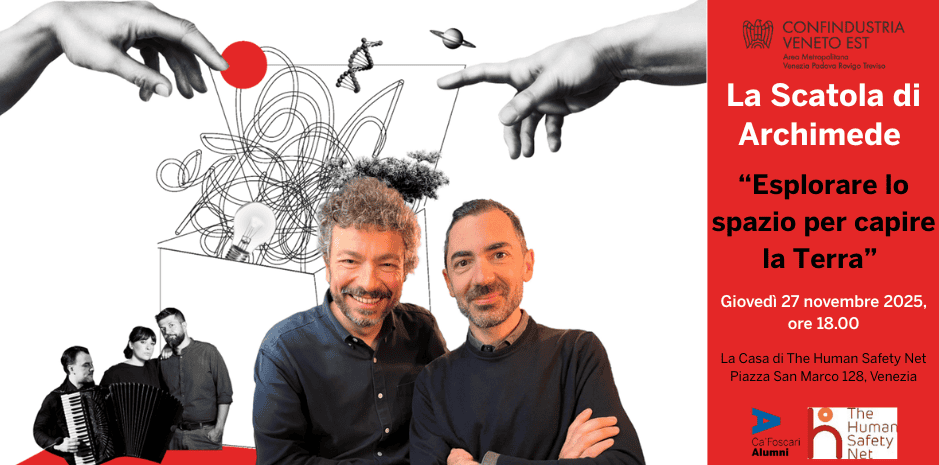 Segnaliamo a tutti gli Alumni "La Scatola di Archimede", appuntamento che si terrà giovedì 27 novembre 2025, alle ore 18:00, presso La Casa di The Human Safety Net, in piazza San Marco 128 a Venezia.